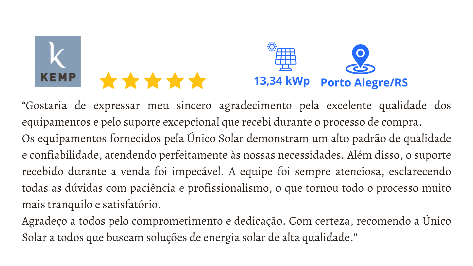 A Unico Solar é uma empresa de energia renovável com mais de 15 anos de experiência em tecnologia. Com um espírito jovem e inovador, a empresa se dedica a construir um mundo mais sustentável através de soluções de energia solar eficientes e acessíveis. Oferecendo desde painéis solares avançados até sistemas integrados de gestão de energia, a Unico Solar atende a clientes residenciais e empresariais. Comprometida com a sustentabilidade, a empresa promove práticas empresariais responsáveis e busca constantemente minimizar seu impacto ambiental, liderando a transição para uma matriz energética mais limpa.