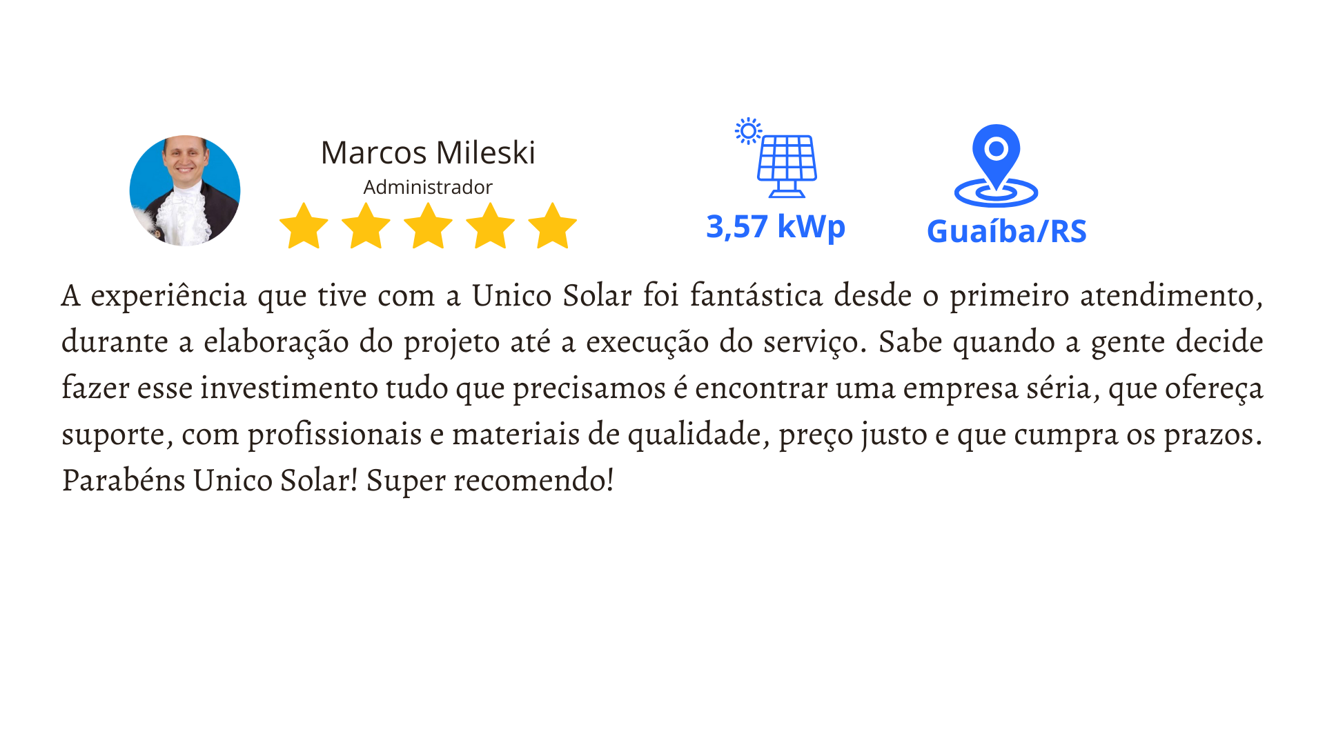 Garantia Unico Solar de 12 meses na parte elétrica e por 3 meses caso surja algum vazamento ou goteira
