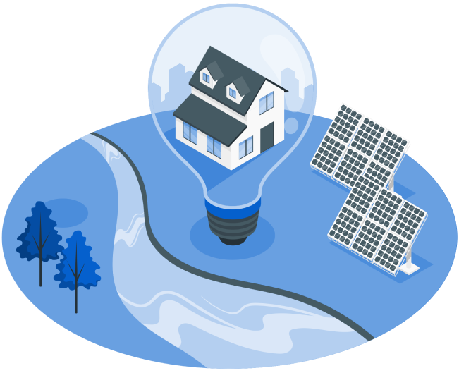 Lâmpada com casa dentro, representando energia solar